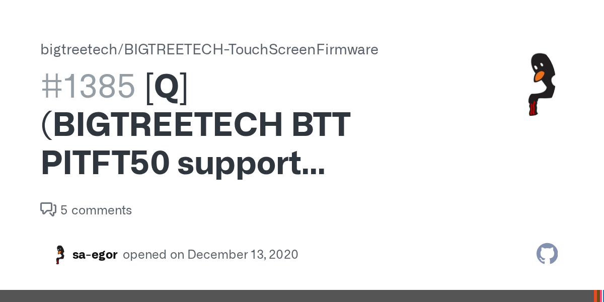 143 Bigtreetech Pitft50 Github. Guillorylild opened this issue 8 days ago · 3 comments. Closed 3dbret opened this issue sep 19, 2020 · 21 comments